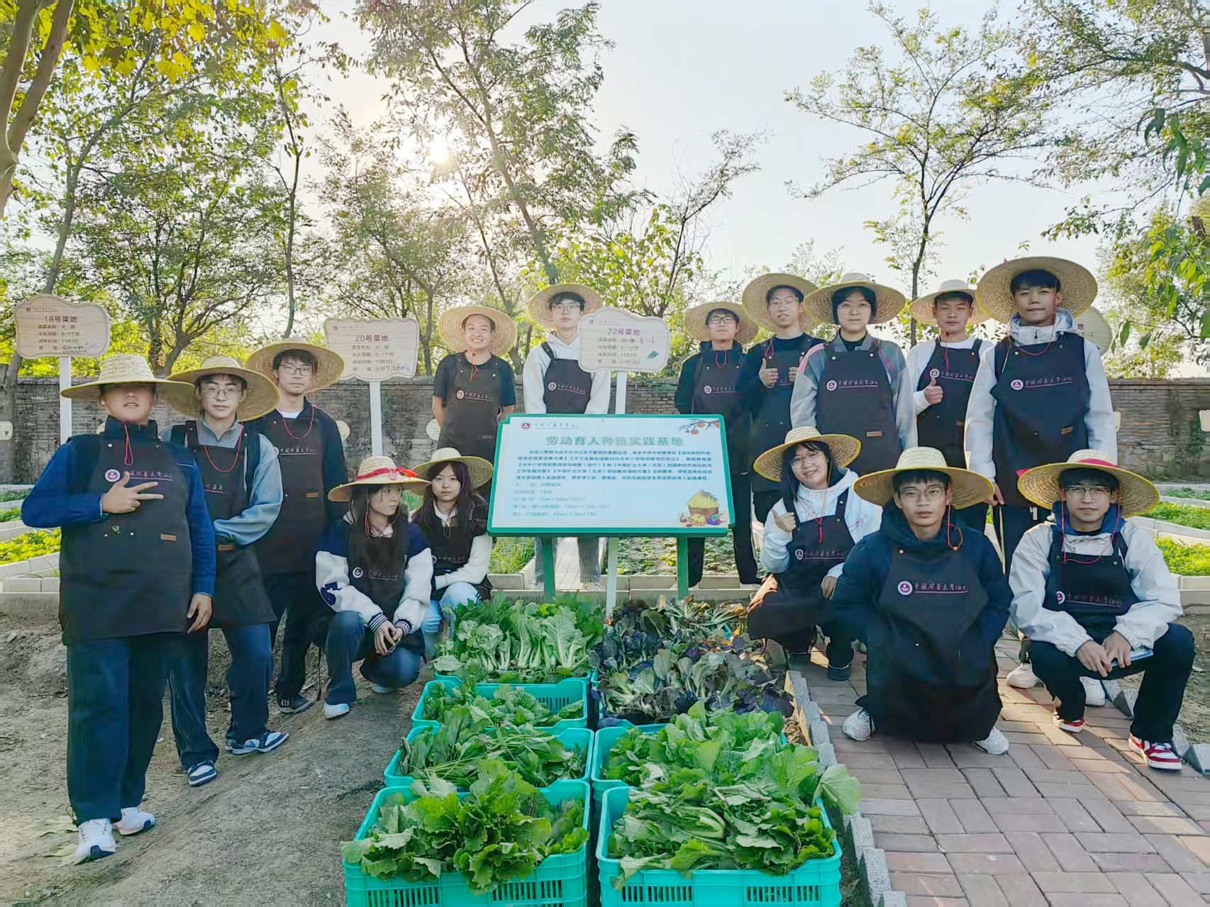 午后的劳动育人种植实践基地,绿意盎然。同学们头戴草帽、手握农具,化身田间的“小农夫”,在菜畦间弯腰采摘。菠菜、小油菜、快菜……一筐筐带着泥土芬芳的蔬菜,是他们耕耘的勋章。