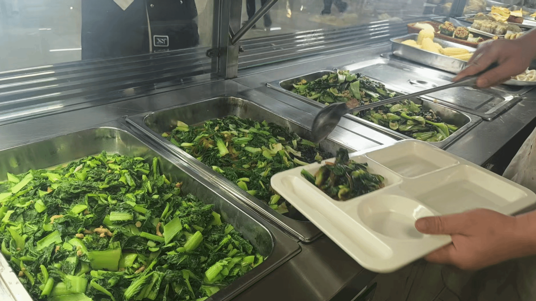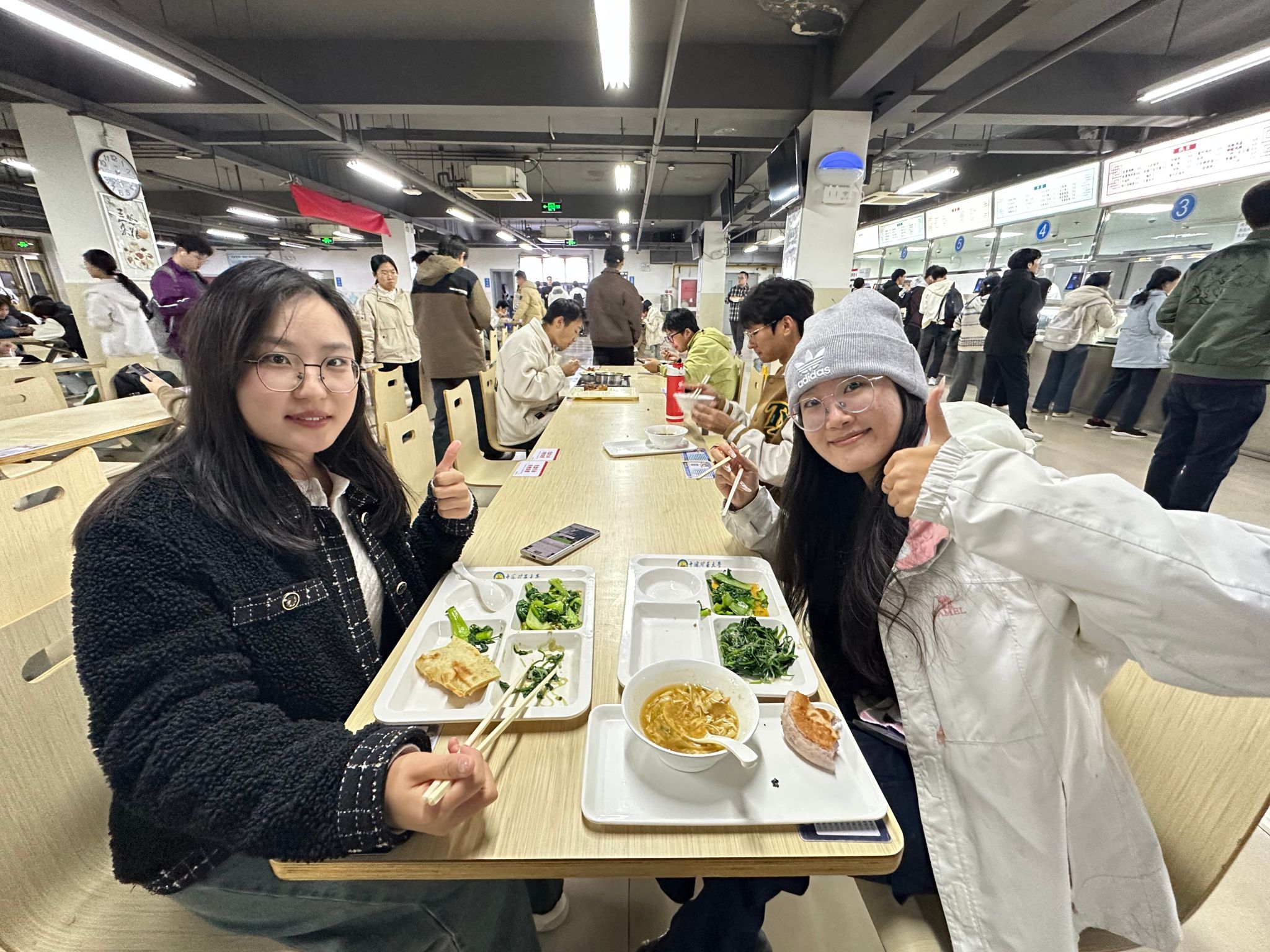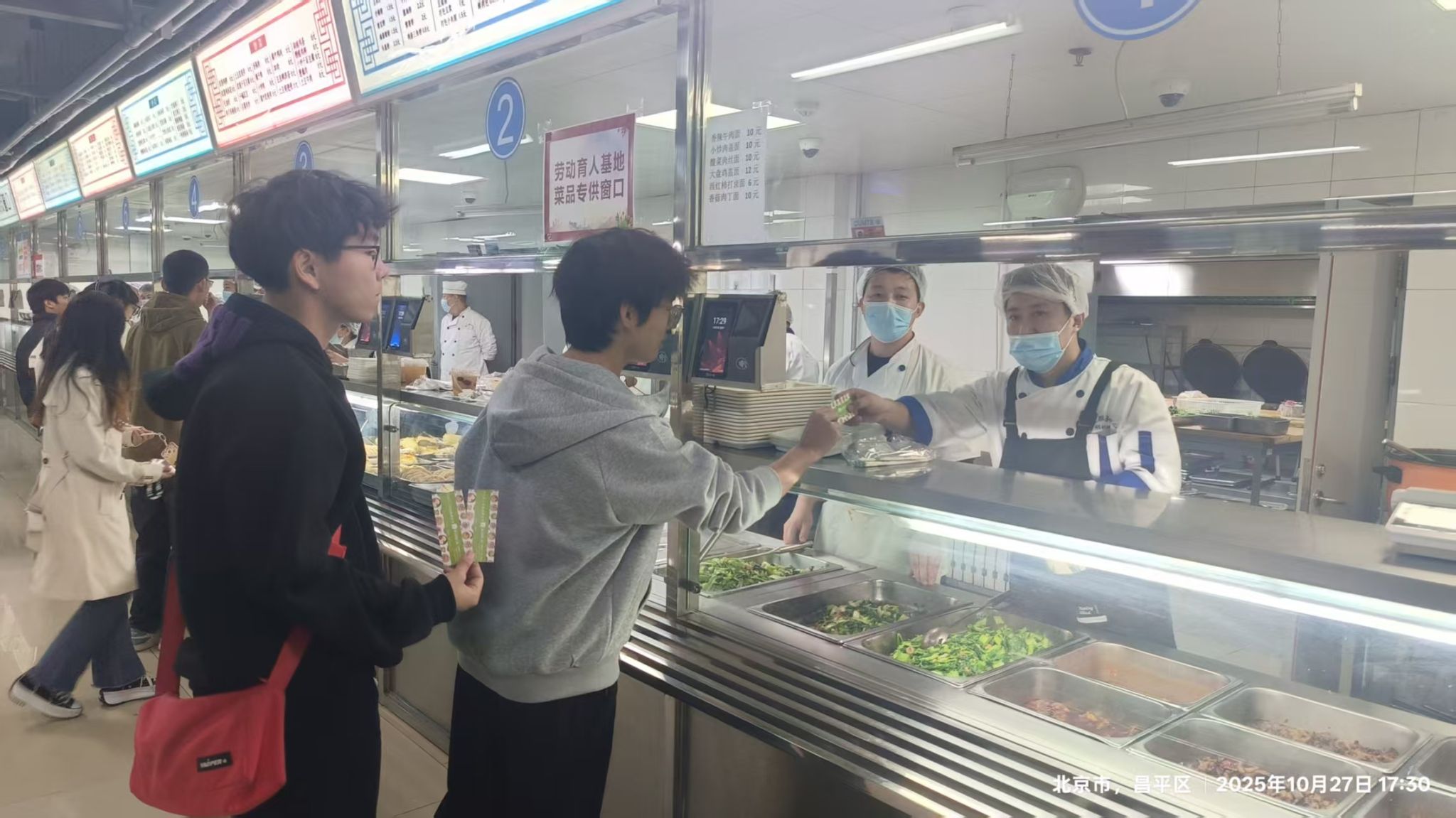 下午5点,手持餐券的同学们准时来到食堂。当餐盘里盛上自己亲手种植的蔬菜,成就感瞬间拉满!“这盘青菜吃起来格外甜!”“原来自己种的菜,吃起来这么有‘故事感’!”同学们一边大快朵颐,一边分享着劳动的喜悦,食堂里充满了烟火气与幸福感。
